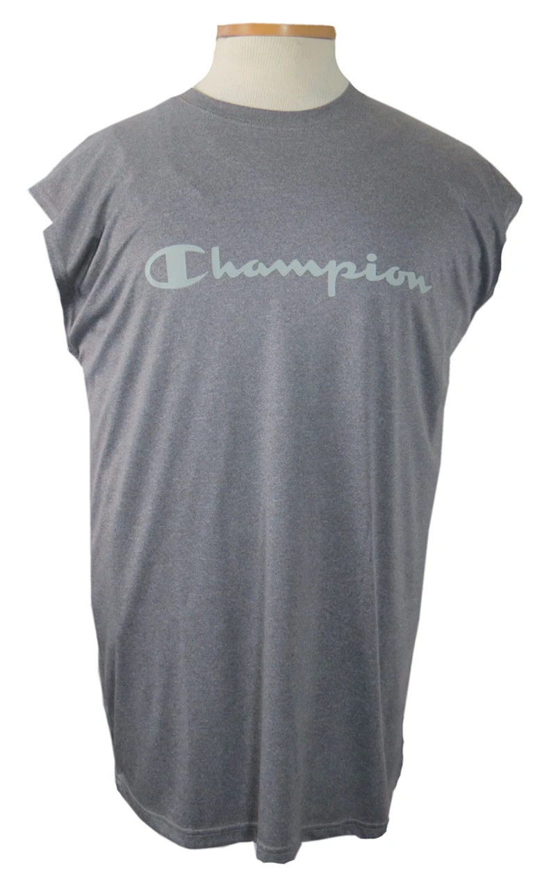Keep your cool in this Champion Double dry sleeveless tee shirt. Double Dry technology wicks away moisture and sweat while anti-odor technology helps you stay fresh no matter what the activity. Great for working out, yard work, playing sports or a day at the beach. Made of quick drying 100% Polyester, it features the classic script Champion logo screen printed across the chest. Embroidered Champion “C” logo at center back shoulder. Double stitched seams and back neck taping for durability.
