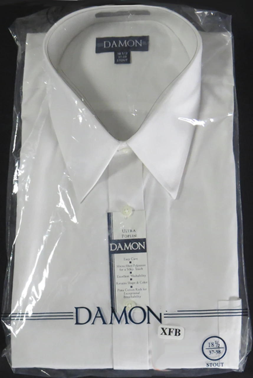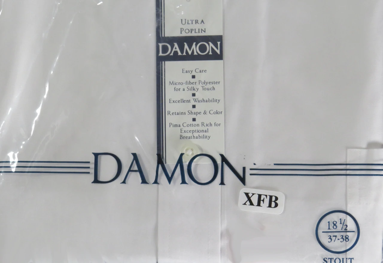 This Ultra Poplin Easy Care Dress Shirt by Damon is Easy Care and Easy to Wear. Made of a blend of micro-fiber polyester for a silky touch and pima cotton for breathability. With excellent washability, it retains its shape and color, wash after wash. The Stout Fit is cut extra full in the body. Fabric content: 55% Cotton, 45% Polyester.