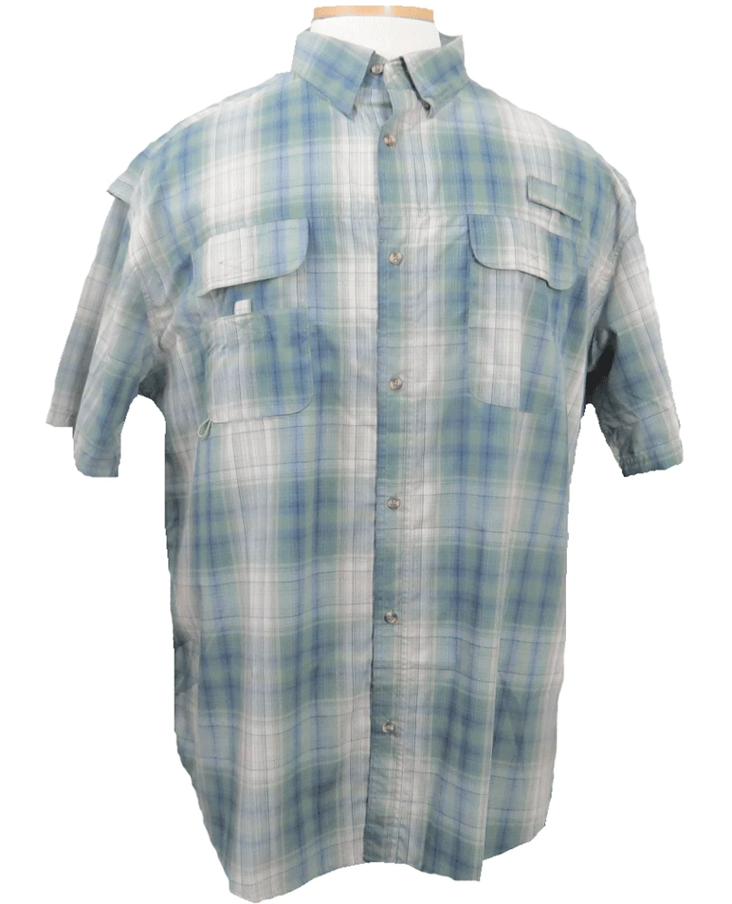 Whether you’re an avid fisherman, or just enjoy the great outdoors, you’ll love this fishing shirt by Falcon Bay. Both sporty and functional, it features 3 front pockets with Velcro closures to provide convenient access to frequently used gear. Rod loop above left chest pocket with Velcro closure. Caped back with Velcro closure over a vented mesh back panel provides ease of movement, while helping to keep you cool. Collar with button down closures at lapel, and Velcro at back neck, can be rolled up to protect the back of the neck from the blazing sun, built in UPF 30 UV protection. Fabric Content: 55% Cotton, 45% Polyester.
