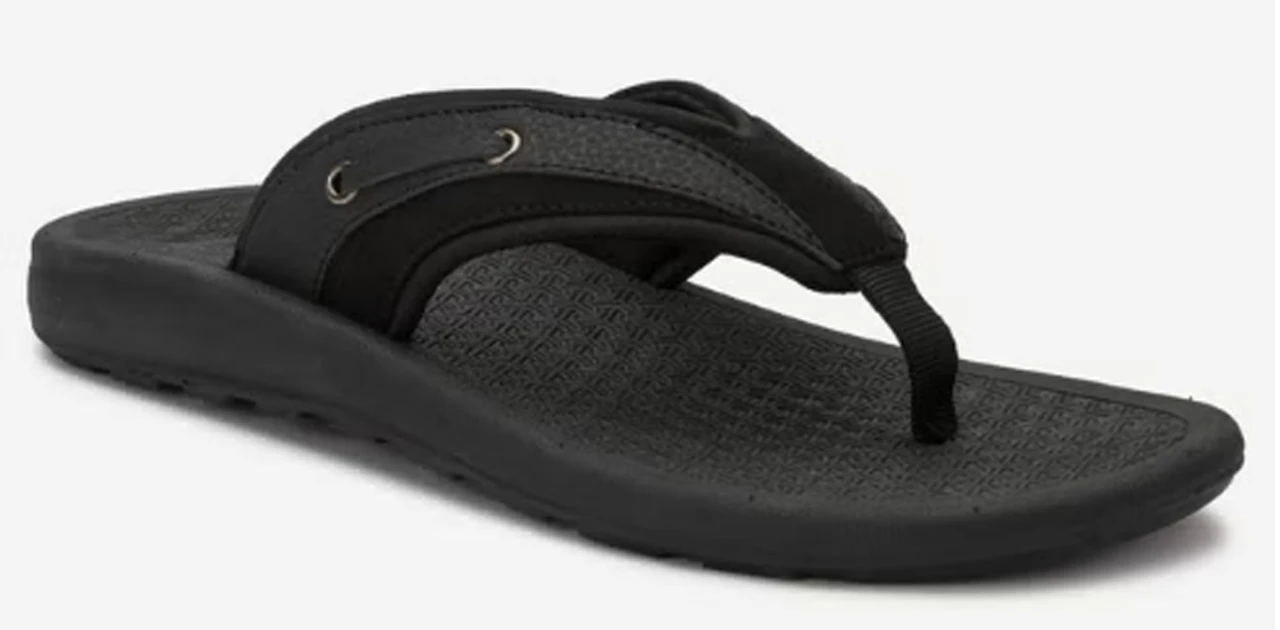 From the park to the beach to the patio, nothing says “laid back summer days” like a great pair of Flip flops! These King Size Island Flip Flops feature a cushioned midsole for support and tracked rubber outsole for slip resistance. Molded footbed for comfort, synthetic Nubuck upper. Lace-up accent at straps for a touch of style.Â