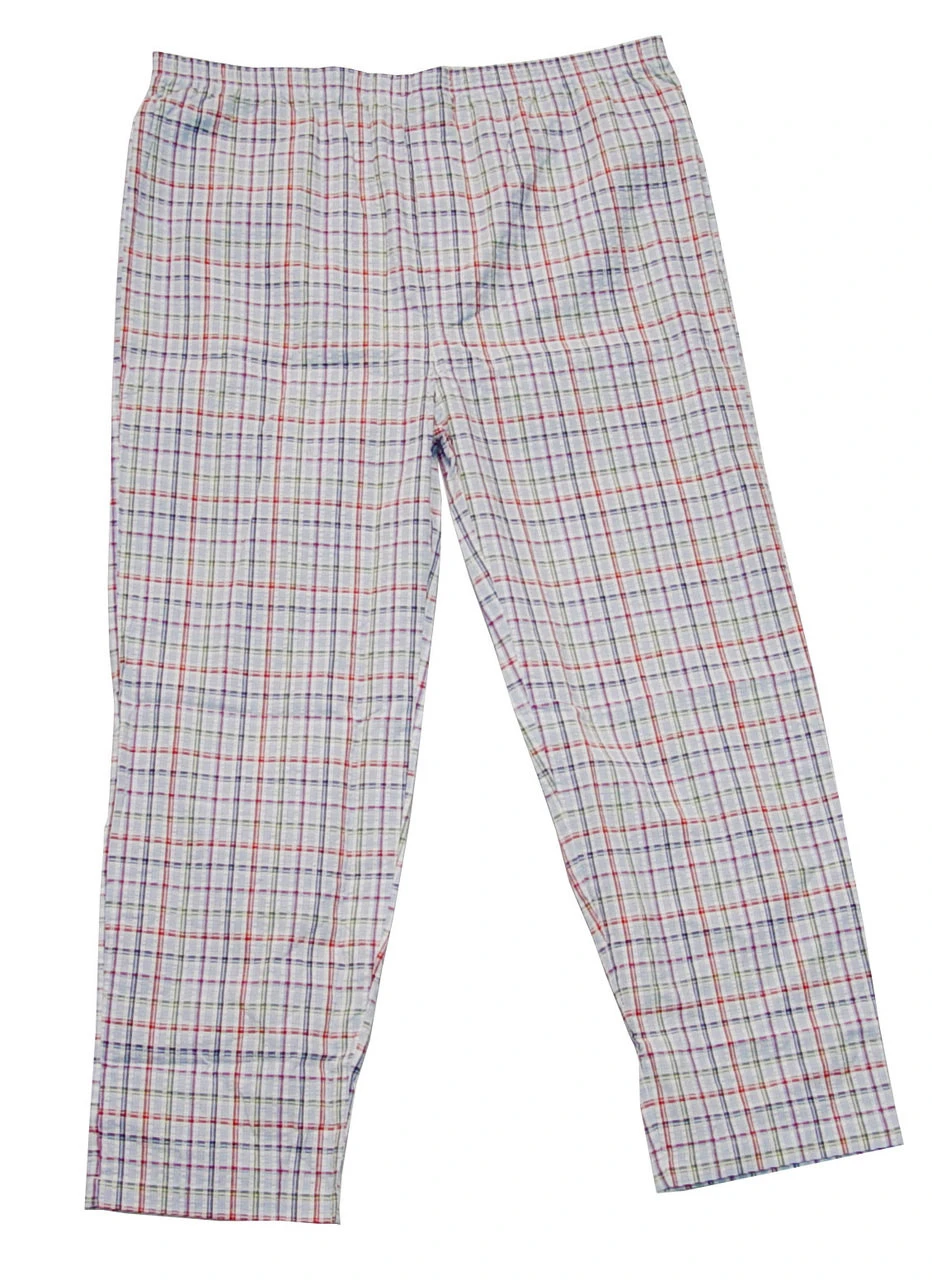 Relax in style in these lightweight plaid lounge pants. They feature a green, blue and red plaid pattern and full elastic waist. Front fly with snap closure. Fabric content: 100% Cotton.