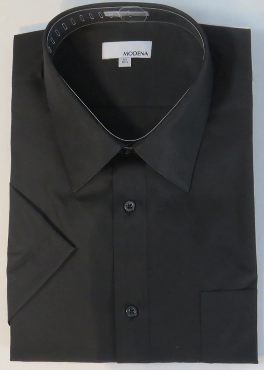 Timeless and versatile, this Modena Short Sleeve dress shirt looks great on it’s own or layered under a sweater, cardigan or jacket. Wear with or without a tie to go from the office to a night out. It features a left chest pocket, spread collar and a classic fit. Easy care, wrinkle free and machine washable. Fabric content: 60% Cotton, 40% Polyester.