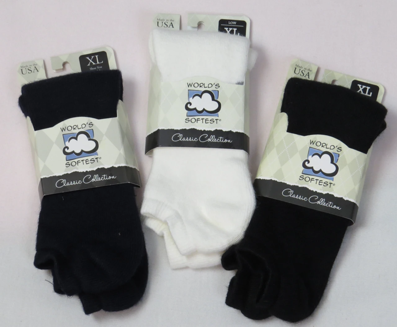 World’s Softest Sock Classic Collection socks are 76% acrylic, 22% nylon, 1% Polyester, 1% lycra spandex.